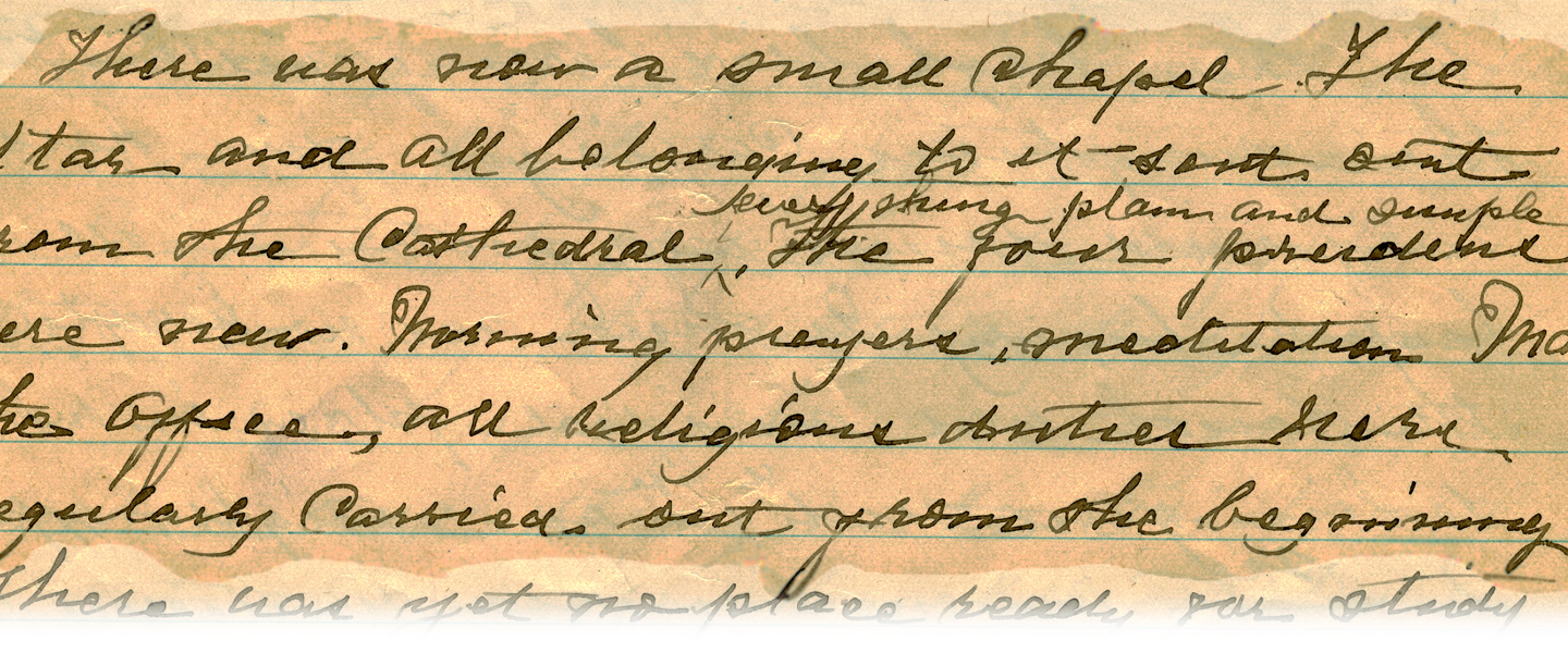 Mother Marie William’s numerous letters to the sisters, whether at the Motherhouse or on mission, are marked by a deep devotion as well as a realistic candor. These letters comment on the difficulties of the times as well as the perennial challenges of teaching, living in community, and maintaining spiritual fervor. Take, for example, this passage from Tuesday of Holy Week, 1966: “Be faithful to the heritage of Community devotion. Above all else, nurture a constant and stable reliance on the Presence of Christ in the Blessed Sacrament. Pray, not necessarily long, but with deep love and earnestness.” Forty years later, sisters continue to turn to her correspondence for fresh inspiration.