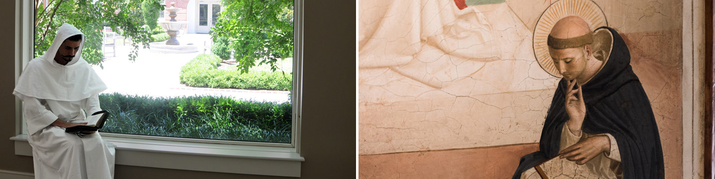 The holy father Dominic also had another beautiful way of praying, full of devotion and grace. After the canonical hours and the grace which is said in common after meals the father would go off quickly to some place where he could be alone, in a cell or somewhere. Sober and alert and anointed with a spirit of devotion which he had drawn from the words of God which had been sung in choir or during the meal, he would settle himself down to read or pray, recollecting himself in himself and fixing himself in the presence of God. Sitting there quietly, he would open some book before him, arming himself first with the sign of the cross, and then he would read. And he would be moved in his mind as delightfully as if he heard the Lord speaking to him. As the Psalm says, ‘I will hear what the Lord God is saying in me, because he will speak peace to his people and upon his saints, and to those who turn to him with all their heart’ (Ps. 84:9). It was as if he were arguing with a friend; at one moment he would appear to be feeling impatient, nodding his head energetically, then he would seem to be listening quietly, then you would see him disputing and struggling, and laughing and weeping all at once, fixing then lowering his gaze, then again speaking quietly and beating his breast. If anyone was inquisitive enough to want to spy on him secretly, he would find that the holy father Dominic was like Moses, who went into the innermost desert and saw the burning bush and the Lord speaking and calling to him to humble himself (Exod. 3:1ff). The man of God had a prophetic way of passing over quickly from reading to prayer and from meditation to contemplation.