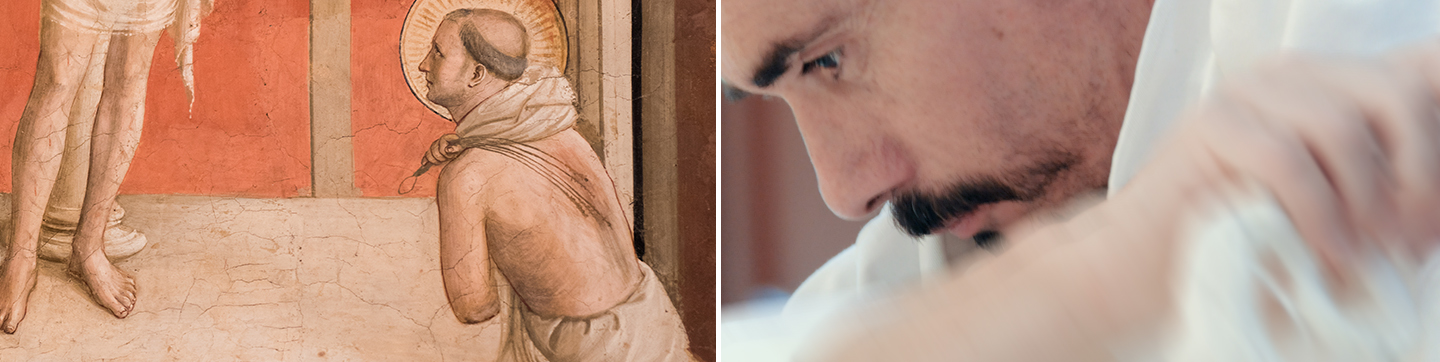For this reason, rising up from the ground, he used to take the discipline with an iron chain saying, ‘Your discipline has set me straight towards my goal’ (Ps. 17:36). This is why the whole order determined that all the brethren, out of respect for the memory of St. Dominic’s example, should take the discipline on their bare backs with sticks of wood every ferial day after Compline, saying the Miserere or the De profundis. They were to do this either for their own sins or for those of others whose gifts support them. So no one, however innocent, should withdraw himself from following this holy example.