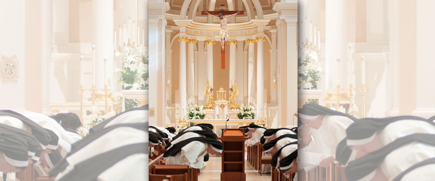 As St. Cecilia Dominicans we chant or sing the psalms and responses, rather than recite them. Our bodies, too, join in the prayers as we sit, stand, and bow, so that our whole person is engaged in our praise of and conversation with God.